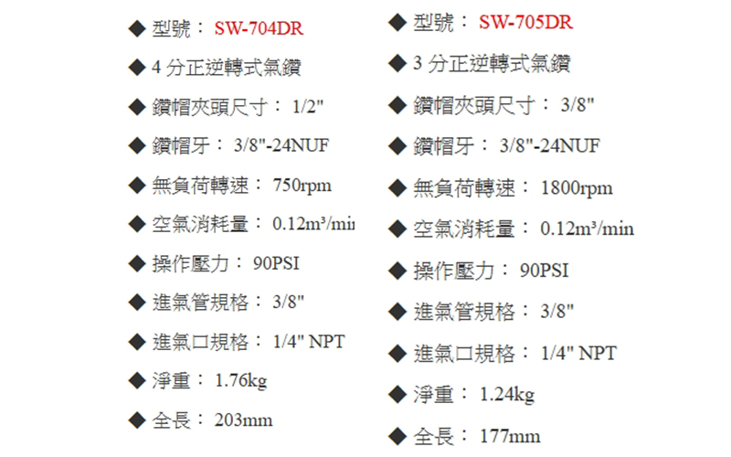槍型氣動電鑽SW-704DR&SW-705DR