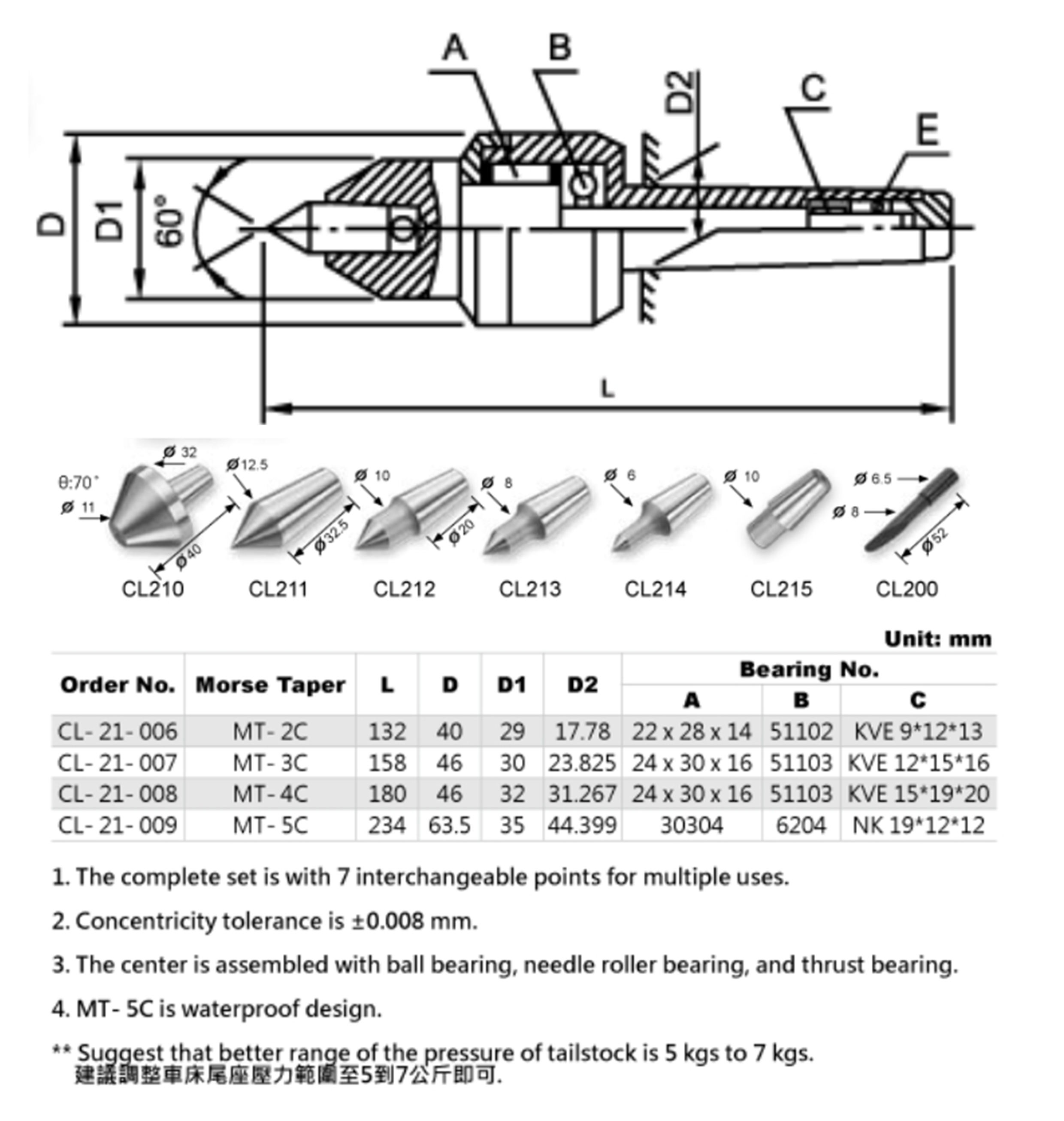 上田替換式迴轉頂針(輕負荷無注油孔)